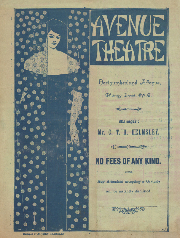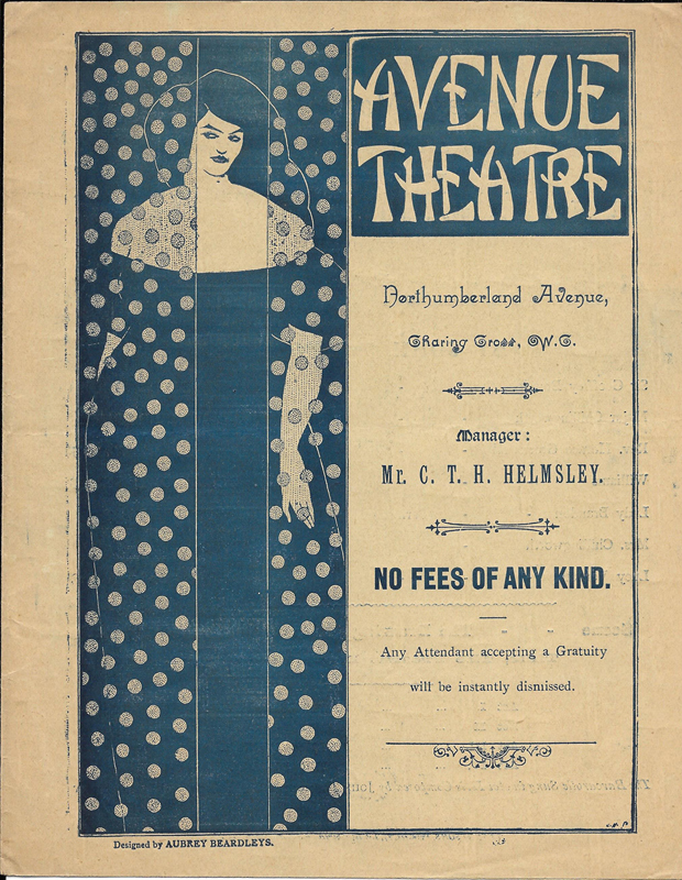 Aubrey Beardsley and variant programmes for John Todhunter's A Comedy of Sighs I think you will find dark green on light the most satisfactory scheme of colour, though it has often been used before for magazine covers etc. Of course I should make my design in black and white, so that a zinc block can be made, and from that you can print in any colour you like. By the way, if my design is going to be used as a poster had I not better draw it large size and have it reduced for programme?1 Beardsley also notes his understanding that no theatre had been settled for the production and there was therefore a delay before the illustration could be completed. It cannot have been a long delay because on 8 March Farr wrote to The Era from the Avenue Theatre: Sir, - As my name has been mentioned in connection with the management of the new undertaking at the Avenue Theatre, may I explain that I am simply acting for someone else, who, wishing to remain unknown in the matter, has commissioned me to try the experiment of producing, under adequate artistic conditions, plays of a class outside the ordinary routine of theatrical enterprise. There are many stringent conditions imposed on me as to the manner of production, as well as the matter produced, and if the whole thing fails to attract the public, a new departure will at least have had a fair trial. The newspapers tried to discover the identity of her backer without success and all assumed it to be a man. It was, however, Annie Horniman, a member with W B Yeats and Farr of the Order of the Golden Dawn. Yeats and Todhunter lived in the aesthetic London suburb of Bedford Park, with Yeats being the neighbour of Farr’s sister. Horniman had provided the money and clearly had a strong view of the sort of play to be produced and the manner of its production. As one paper complained before the season opened, “he not only determines the kind of play to be produced, but refuses to allow the management to engage a band. Why the mystery man should object to an orchestra I cannot divine”.2 Between the acts people will be able to talk. Better that, we think, than to have their attention interrupted by the indifferent performance of an utterly irrelevant waltz. The curtain raiser on the first night was Yeats’s The Land of Heart’s Desire. The critics found it “weird and depressing” but “some of the lines are happily expressed”, although the Western Mail thought it “amateurish” and that while Yeats “may be a very gifted author” he was “ignorant of the very first principles of playwriting”. Many of Yeats’s lines could not be heard, partly because the actors were not projecting well enough and partly because the audience was already making a considerable noise, which got worse when Todhunter’s A Comedy of Sighs began. Possibly there are women who so degrade themselves and their sex as to insist that “Women are such d-----d fools,” or an emancipated woman to assert “I’ve made a d-----d fool of myself,” and to playfully declare that “I have been playing hell and tommy,” but even the staunchest upholders of the “notable theatrical experiment” thought that the line must be drawn at a cursing woman, and they retorted by giving her the medicine that she had prescribed for herself.3 The audience reaction was to hiss and the Western Mail again echoed the sentiments of other critics by saying that It is as well to break the force of folly before it goes further. The lesson was needed, and it was given in grim earnest. There is much virtue in an honest hiss. It clears the theatrical atmosphere of pretentiousness, pachydermatous indifference to the feelings of the community at large, and deplorable conceit. Reynolds’s Newspaper criticised the play but conceded that the writing was not all that was at fault: But the best dramatic work would have stood a slender chance with the companies who bored and irritated the public on Thursday night at the Avenue.4 The overall reaction was such that Farr and the theatre manager, C T H Helmsley needed to take urgent action. Although Farr had already played in Todhunter’s Sicilian Idyll, he wasn’t her (or Horniman’s) first choice for the Avenue Theatre season. She had negotiated with George Bernard Shaw (with whom she was conducting an affair) for his play Arms and the Man, but Shaw had not thought it ready for the stage. On the first night of A Comedy of Sighs, Shaw received a telegram summoning him to the Avenue immediately. When he got there Farr and Hemsley were contemplating – “in despair” – producing Widowers’ Houses. According to Shaw I dissuaded them from that and after some discussion took my new play [Arms and the Man] out on to the Embankment Gardens and there and then put the last touches to it before leaving it to be typewritten.5 That was on 29 March; by 11 April it was in rehearsal. The earliest programme examined, [Fig. 1] which was almost certainly the first night programme is of four pages and has as the headline on the inside page Thursday, March 29th, 1894 Beneath the image on the front it says The second programme [Fig. 2] is from later in the run because it credits Wurm’s Viennese White Band. It must, therefore be from the fourth performance or later. The headline on the inside page is: To-Night at 8.40, Beneath the image on the front it says A third programme, for a date unknown, but also with Beardsley’s name misspelled is included in the catalogue of the Aubrey Beardsley exhibition at the Victoria and Albert Museum in 1966 (item 368).7 The catalogue states that beneath the image on the front the name is given as AUBREY BEARDSLEYS A fourth programme, the front of which is reproduced in Aubrey Beardsley by Matthew Sturgis (p.185),8 shows the correct spelling of Beardsley’s name. Notes